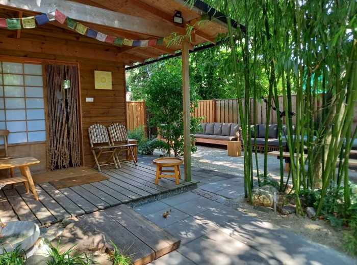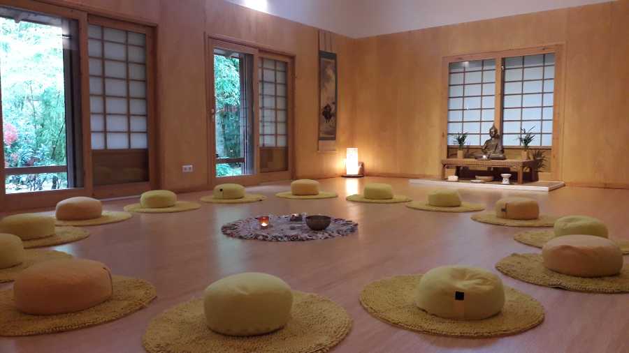 Daar hebben we de meditatiezaal tot onze beschikking. Daarnaast kunnen ook gebruik maken van de mooie Japanse tuin.