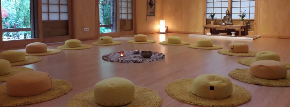 Oude, witte garagedeuren omringen mij, hier zou het ergens moeten zijn: meditatiehuis ‘Het Zonnelicht’. Ik loop een hoekje om en zie een grote houten poort. Zodra ik er doorheen loop is het alsof ik in een andere wereld ben belandt. De garagedeuren waar ik net nog langs liep lijken een vage herinnering, nu ik deze prachtige tuin ben binnen gelopen. De zon schijnt op de verzameling bamboeplanten aan de linkerkant van de tuin. Vooraan staat een simpel grijs Boeddhabeeld. Rechts van mij zie ik een klein bakstenen huisje met houten schuifdeuren die verdeeld zijn in allemaal kleine raampjes, het meditatiehuis.
